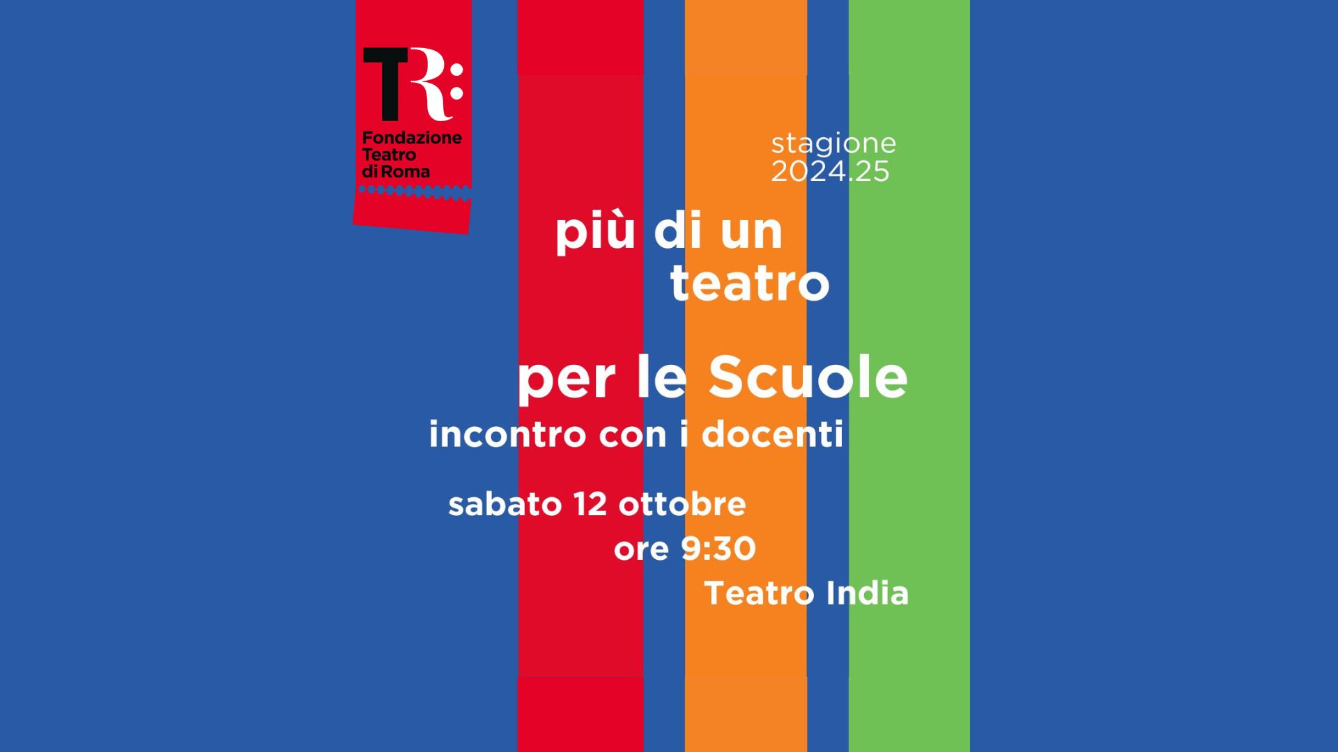 Il Teatro di Roma incontra i docenti delle scuole primarie e secondarie di primo e secondo grado, per illustrare gli spettacoli pensati per le nuove generazioni, in scena nella stagione 2024/’25 nei teatri Argentina, India e Torlonia.