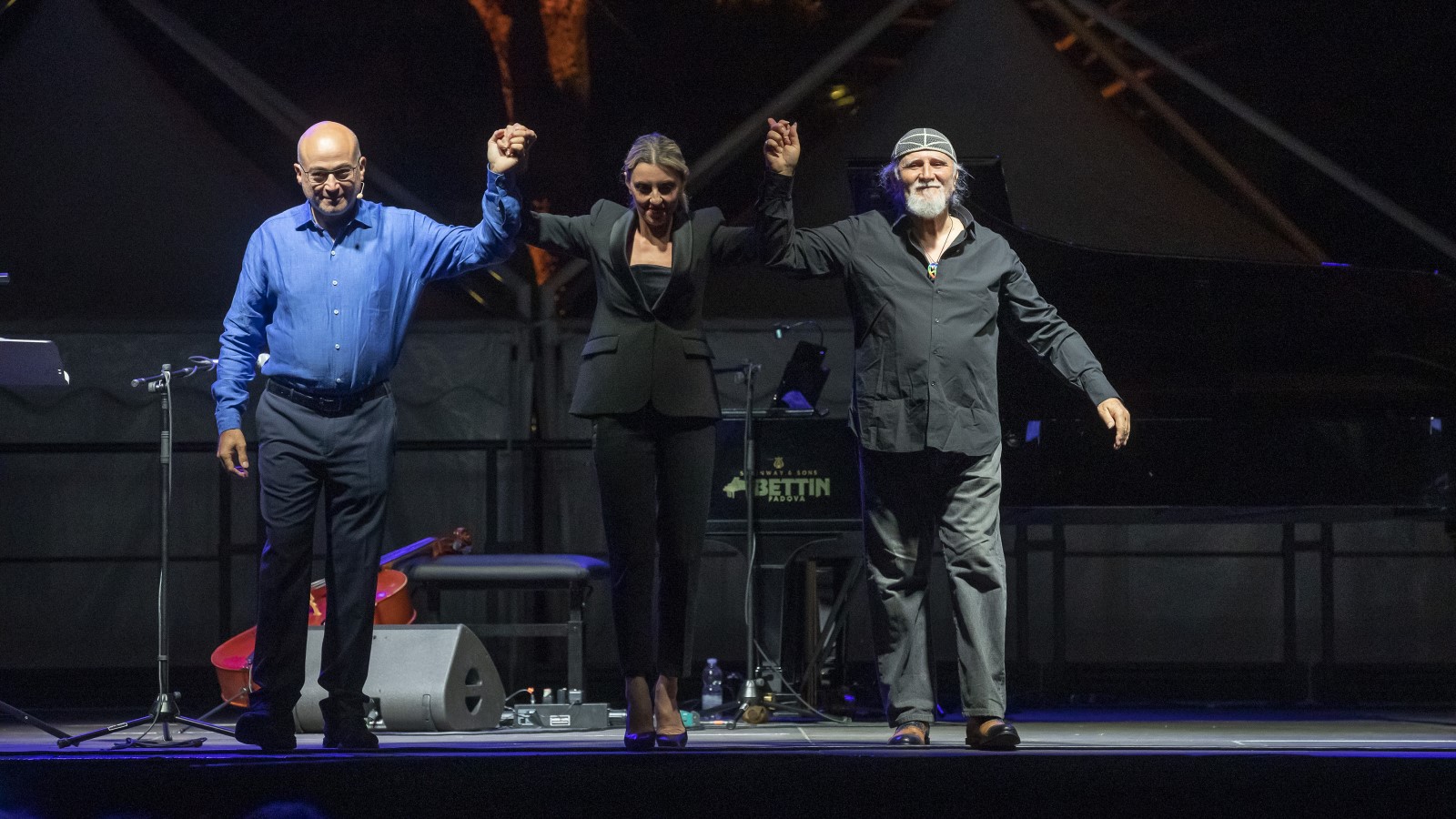 Una storia a due voci: Aldo Cazzullo racconta, Moni Ovadia legge i testi del Duce e delle sue vittime. Con musiche e canzoni dell’epoca.