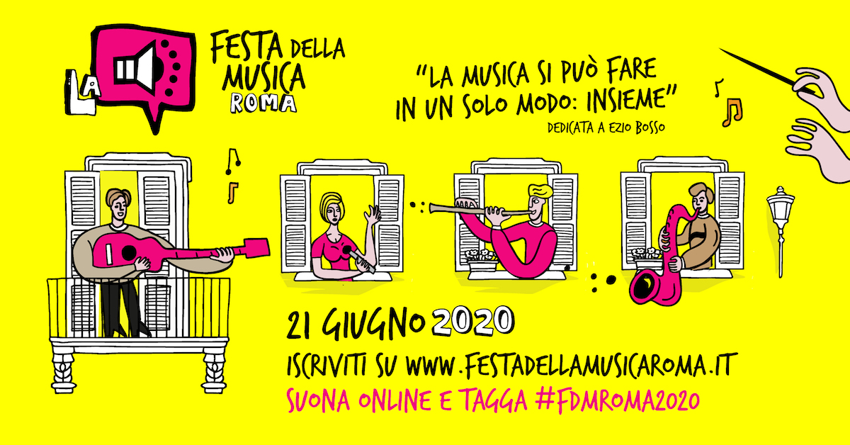 Quest’anno la Festa si svolge in un modo speciale: musicisti, appassionati, professionisti e soprattutto amatori sono invitati a festeggiare suonando e cantando nelle proprie case, dalle finestre o dai balconi, e mettendo in condivisione la propria performance sui social network con l’hashtag #FDMRoma2020.