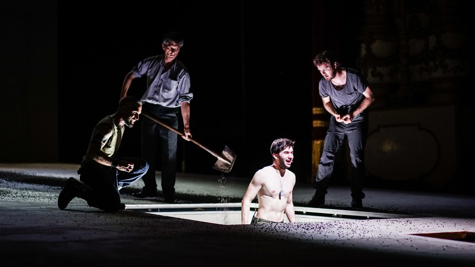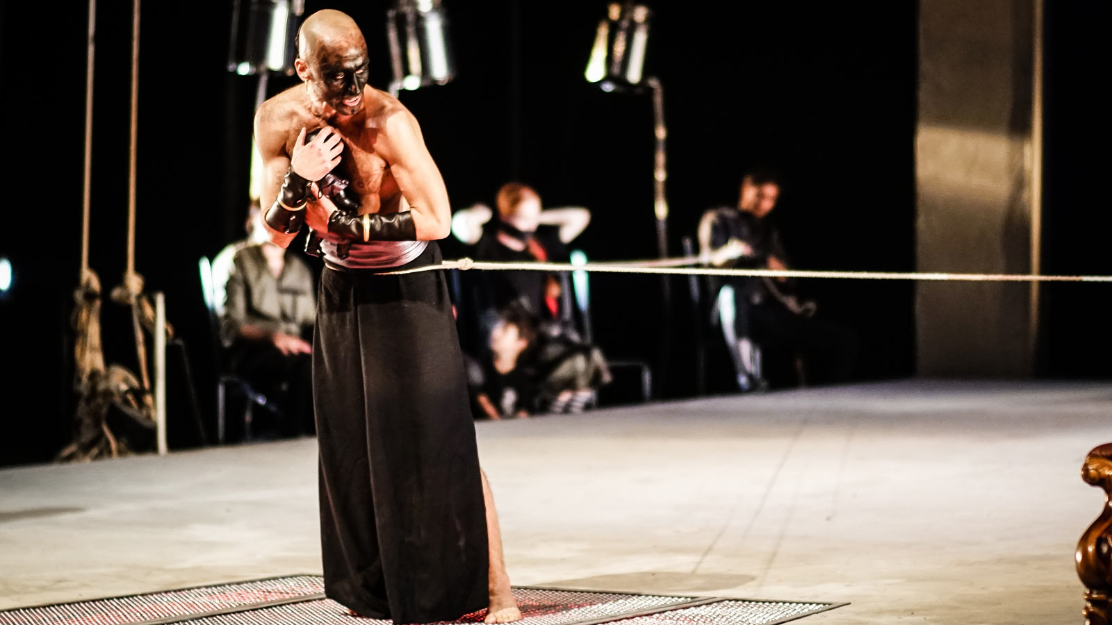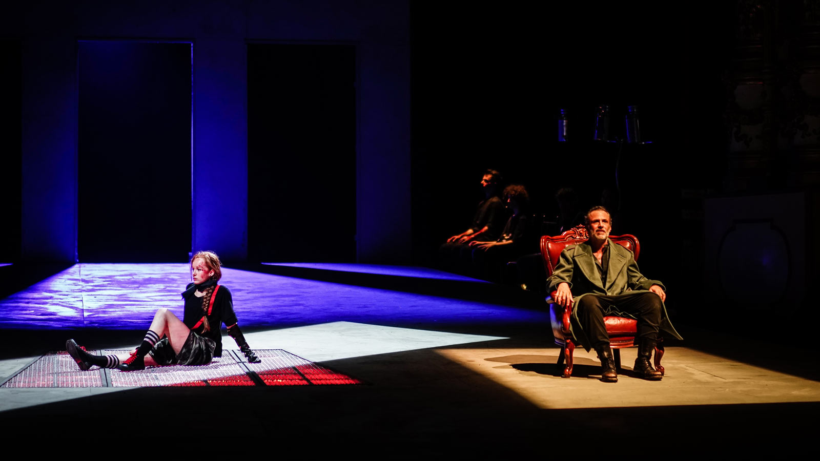 Ed è questa un’altra delle chiavi di questa messinscena, ovvero la consapevolezza sempre chiara e presente negli attori di star recitando una tragedia. Non con un esplicito dentro\fuori ma in un luogo più ambiguo e sottile in cui il piano della realtà e della finzione si intrecciano e confondono continuamente.